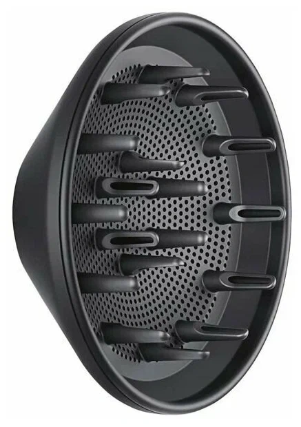 При правильном использовании насадки удается придать волосам максимальный объем. Она отличается объемной чашей, из которой дует мягкий поток воздуха. При сушке кудрявых волос сохраняется их естественная форма.